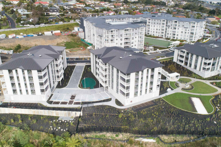 Achieving the team’s long term objective of being defect free at practical completion, the Metlifecare Greenwich Gardens development involved the construction of four 5 level buildings, each comprising of a basement car park and 4 levels of apartments (96 in total) and associated civil/landscape works.